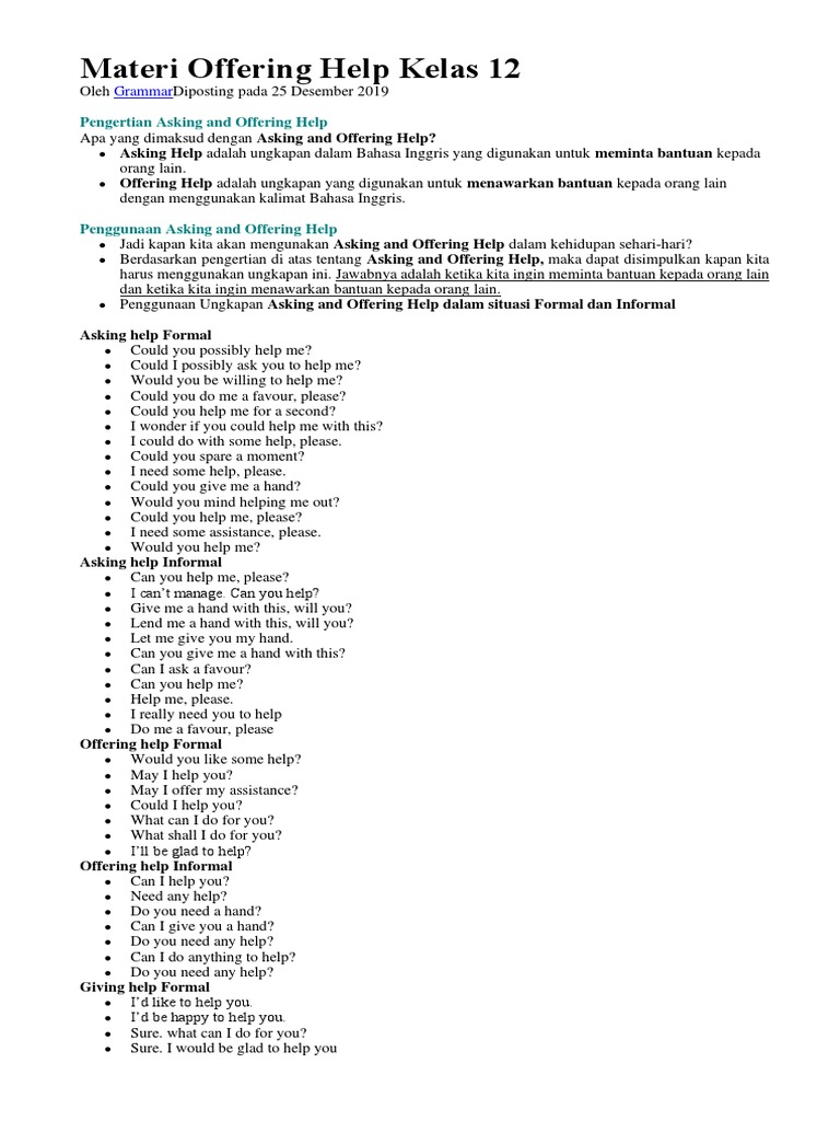 Materi Offering Help Kelas 12 - Materi Bahasa Inggris Kelas 12 Chapter1 Help Service Asking Giving And Offering Part 1 Youtube / Maybe you would like to learn more about one of these?